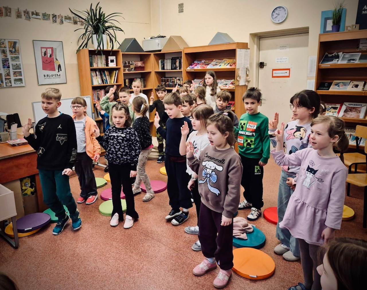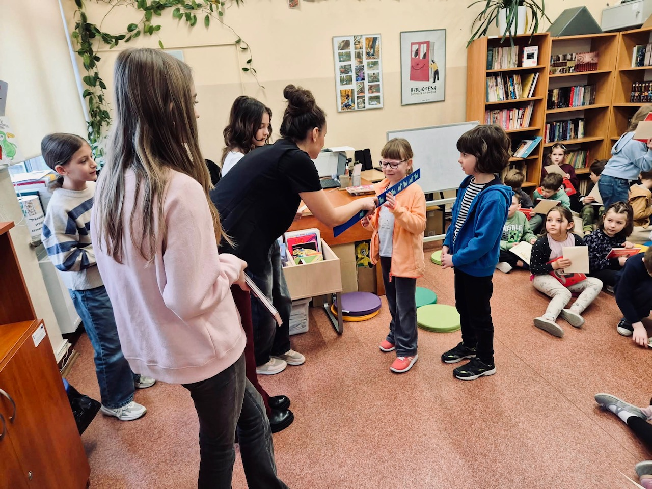 Podczas wydarzenia uczniowie poznali i przypomnieli sobie regulamin biblioteki i wypożyczania książek, zasady dbania o książki oraz konieczność zachowania ciszy w bibliotece. Spotkanie miało formę aktywną i angażującą – nie zabrakło zagadek, rozmowy z „książką”, wspólnych śmiechów oraz elementów zabawy edukacyjnej.